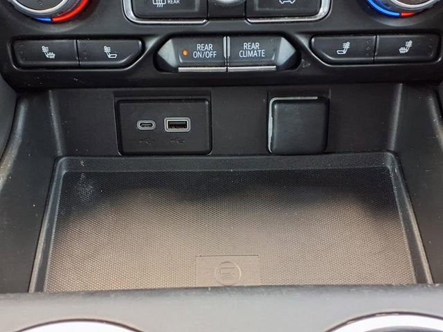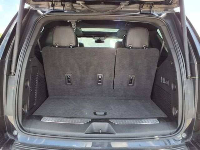 This 2022 Chevrolet Tahoe RST in Dark Ash Metallic comes with the following features: EcoTec3 6.2L V8 10-Speed Automatic with Overdrive 4WD Driver Alert Package (Lane Change Alert w/Side Blind Zone Alert and Rear Cross Traffic Alert), License Plate Front Mounting Package, Luxury Package (2nd Row Pwr Release 60/40 Split-Folding Bench Seat, 3rd Row 60/40 Power-Folding Split-Bench Seat, HD Surround Vision, Heated 2nd Row Outboard Seats, Heated Steering Wheel, Memory Settings, Outside Heated Power-Adjustable Mirrors, Power Tilt & Telescopic Steering Column, and Rear Pedestrian Alert), Preferred Equipment Group 1SP (1st & 2nd Row Color-Keyed Carpeted Floor Mats, Auto-Dimming Inside Rear-View Mirror, Automatic Stop/Start, Bose 9-Speaker Stereo Audio System Feature, Bright Front & Rear Door Sill Plates, Color-Keyed Carpeting Floor Covering, Driver & Front Outboard Passenger Airbags, Enhanced Driver Information Center, Floor Console w/Storage Area, Hands-Free Rear Power Programmable Liftgate, Infotainment Display, Leather-Wrapped Steering Wheel, LED Daytime Running Lamps, Memory Settings for Driver, Remote Start, SiriusXM Radio w/360L, Start/Stop System Disable Button, Universal Home Remote, and Wireless Charging), Sport Performance Package (Dual Exhaust System and Magnetic Ride Control Suspension), 10-Way Power Driver & Passenger Seat Adjusters, 3.23 Rear Axle Ratio, 3rd row seats: split-bench, 4-Wheel Disc Brakes, 9 Speakers, ABS brakes, Air Conditioning, Alloy wheels, AM/FM radio: SiriusXM with 360L, Apple CarPlay/Android Auto, Auto High-beam Headlights, Auto-dimming Rear-View mirror, Automatic temperature control, Brake assist, Bumpers: body-color, Compass, Delay-off headlights, Driver door bin, Driver vanity mirror, Dual front impact airbags, Dual front side impact airbags, Dual-Pane Power Panoramic Sunroof, Electronic Stability Control, Emergency communication system: OnStar and Chevrolet connected services capable, Four wheel independent suspension, Front anti-roll bar, Front Bucket Seats, Front Center Armrest, Front dual zone A/C, Front High-Back Reclining Bucket Seats, Front reading lights, Fully automatic headlights, Garage door transmitter, Heated door mirrors, Heated Driver & Front Passenger Seats, Heated front seats, Illuminated entry, Leather steering wheel, Low tire pressure warning, Memory seat, Navigation System, Not Equipped w/Front & Rear Park Assist, Not Equipped w/Steering Column Lock, Occupant sensing airbag, Outside temperature display, Overhead airbag, Overhead console, Panic alarm, Passenger door bin, Passenger vanity mirror, Perforated Leather Seat Trim, Power door mirrors, Power driver seat, Power Liftgate, Power passenger seat, Power Release 2nd Row Bucket Seats, Power steering, Power windows, Premium audio system: Chevrolet Infotainment System 3, Premium Smooth Ride Suspension, Radio: Chevrolet Infotainment 3 Premium System, Rain sensing wipers, Rear air conditioning, Rear anti-roll bar, Rear reading lights, Rear seat center armrest, Rear window defroster, Rear window wiper, Remote keyless entry, Roof rack: rails only, Security system, Set of 4 Wheel Locks (LPO), Speed control, Speed-sensing steering, Split folding rear seat, Spoiler, Steering wheel mounted audio controls, Tachometer, Telescoping steering wheel, Tilt steering wheel, Traction control, Trip computer, Variably intermittent wipers, Voltmeter, and Wheels: 22 x 9 Bright Machined.