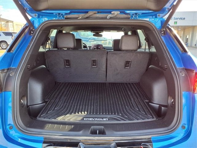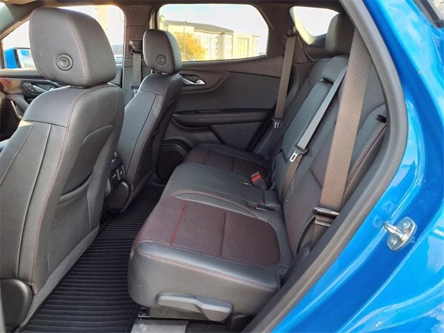 This 2024 Chevrolet Blazer RS in Riptide Blue Metallic comes with the following features: 3.6L V6 SIDI 9-Speed Automatic with Overdrive FWD Interior Protection Package (LPO) (Premium All-Weather Cargo Mat (LPO) and Premium All-Weather Floor Mats), Preferred Equipment Group 1RS (Heated Steering Wheel), 6-Way Power Front Passenger Seat Adjuster, Auto High-beam Headlights, Auto-dimming door mirrors, Brake assist, Front anti-roll bar, Front dual zone A/C, Low tire pressure warning, Navigation System, Panic alarm, Power driver seat, Power Liftgate, Rear anti-roll bar, Speed control, Steering wheel mounted audio controls, 3.49 Final Drive Axle Ratio, 4-Wheel Disc Brakes, 8 Speakers, 8-Way Power Driver Seat Adjuster, ABS brakes, Air Conditioning, Alloy wheels, AM/FM radio: SiriusXM with 360L, Apple CarPlay/Android Auto, Auto-dimming Rear-View mirror, Automatic temperature control, Black Lug Nut & Wheel Lock Kit (LPO), Bose Premium 8-Speaker Audio System Feature, Bumpers: body-color, Child-Seat-Sensing Airbag, Compass, Delay-off headlights, Driver door bin, Driver vanity mirror, Dual front impact airbags, Dual front side impact airbags, Electronic Stability Control, Emergency communication system: OnStar and Chevrolet connected services capable, Four wheel independent suspension, Front Bucket Seats, Front Center Armrest, Front reading lights, Fully automatic headlights, Garage door transmitter, Heated door mirrors, Heated Driver & Front Passenger Seats, Heated front seats, Heated steering wheel, Illuminated entry, Knee airbag, Leather Shift Knob, Leather steering wheel, Occupant sensing airbag, Outside temperature display, Overhead airbag, Overhead console, Passenger door bin, Passenger vanity mirror, Perforated Leather-Appointed Seat Trim, Power door mirrors, Power Driver Lumbar Control, Power passenger seat, Power steering, Power windows, Premium audio system: Chevrolet Infotainment 3 Premium, Radio data system, Radio: Chevrolet Infotainment 3 Premium System, Rear reading lights, Rear seat center armrest, Rear window defroster, Rear window wiper, Remote keyless entry, Ride & Handling Suspension, Security system, SiriusXM w/360L, Speed-sensing steering, Split folding rear seat, Spoiler, Tachometer, Telescoping steering wheel, Tilt steering wheel, Traction control, Trip computer, Turn signal indicator mirrors, Variably intermittent wipers, Voltmeter, Wheels: 20 Technical Gray Aluminum, and Wheels: 21 High Gloss Black w/Machined Face.
